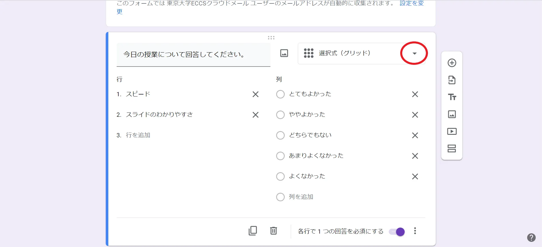 フォームの回答者を学内構成員(ECCSクラウドメールのアカウント保有者)のみに制限したい場合