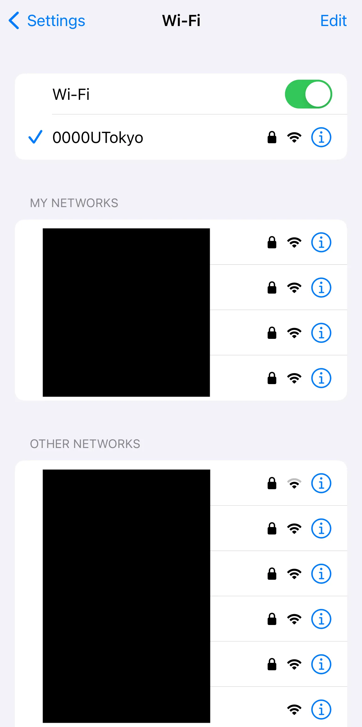 UTokyo Wi-Fi is a Wi-Fi service available to members of the University of Tokyo for educational and research purposes. Please refer to UTokyo Wi-Fi page first, which summarizes the general instructions for using the UTokyo Wi-Fi. If you still need the detailed instructions for iPhones and iPads, please refer to this page.