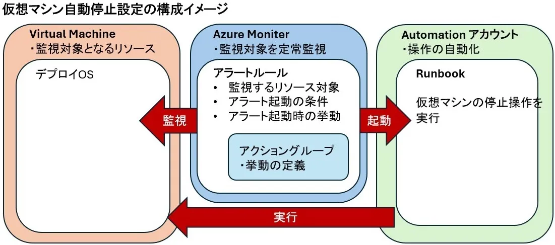 - 自動シャットダウンさせる対象を監視するサービス(Azure Monitor)