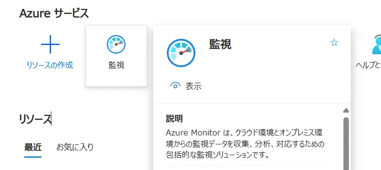 監視を選択し,画面左側の一覧からアラートを選択,さらに画面上部に表示された中からアラートルール>作成と進みます. - 一覧に無い場合、画面上部にある検索欄で検索するか,一覧の右にある