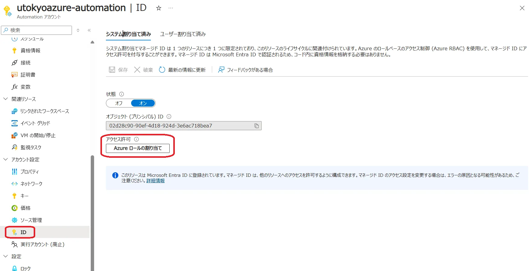 automation アカウントに仮想マシンへのアクセス権限を設定する