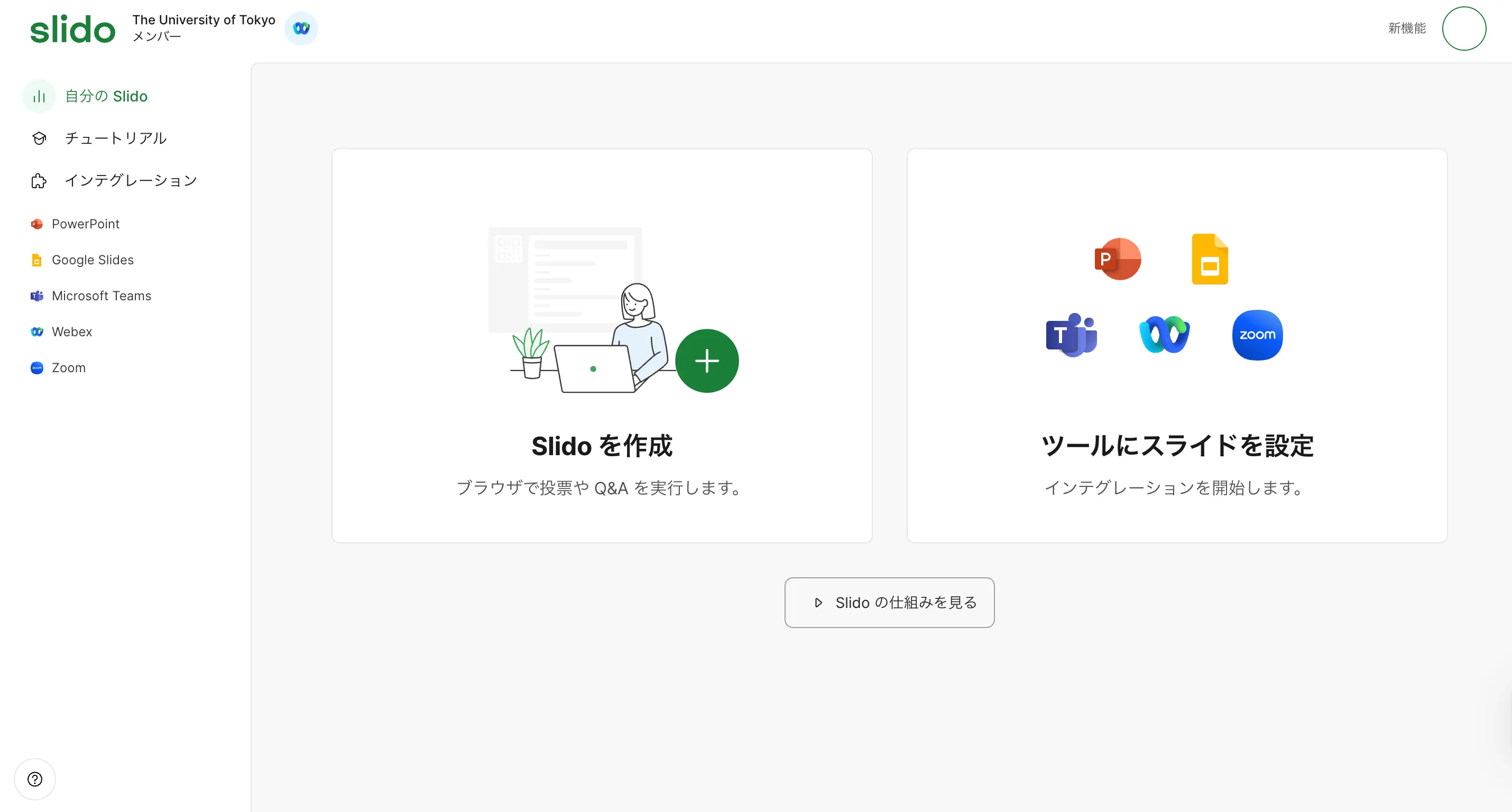 5. 画面の左上にThe University of Tokyoと書かれたSlidoのページが表示されればOKです.