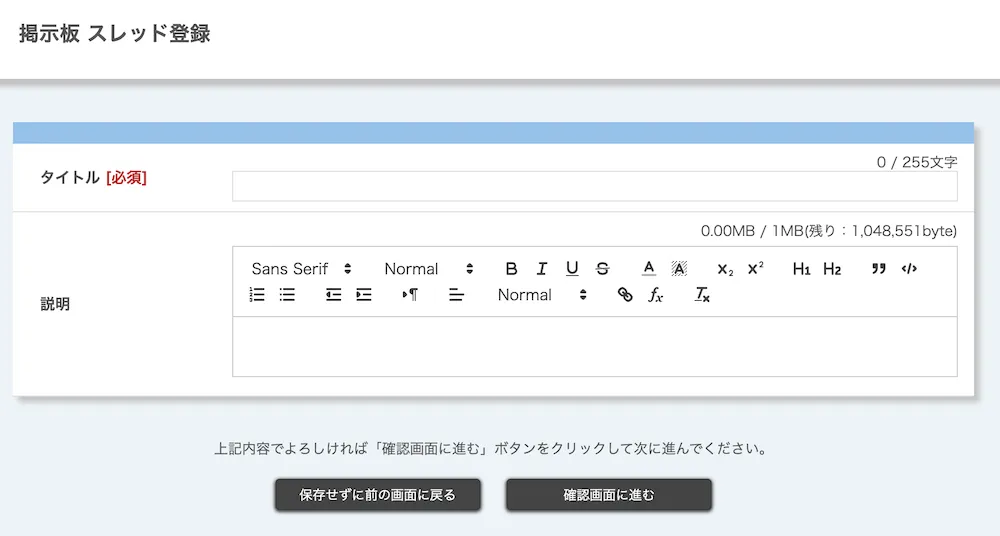 - 投稿内容,添付ファイルのいずれか,または両方の入力が必要です.タイトルのみの投稿はできません.