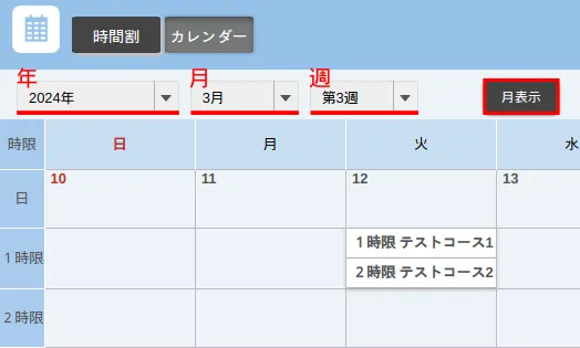 - 画面上部の「年」「月」「週」を切り替えると,表示する時期を変更できます.