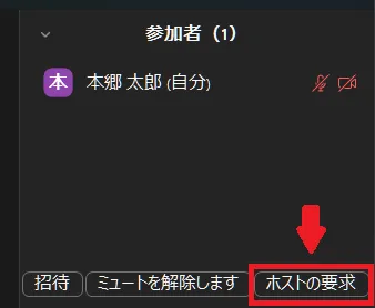 3. 参加者欄の下部にある「ホストの要求」を選択してください.